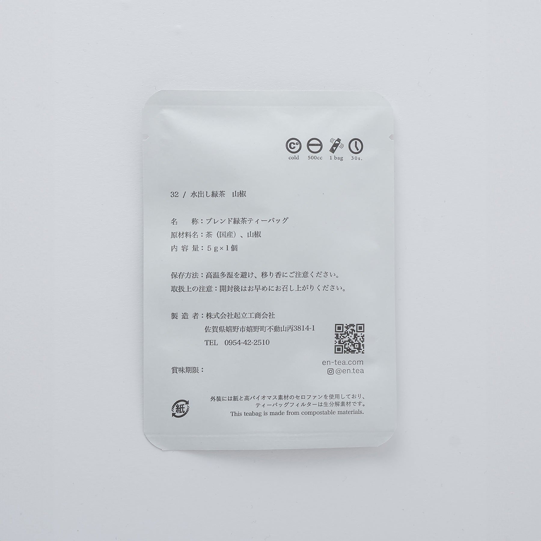 □[個包装] 水出し緑茶 山椒 ティーバッグ 1個入 2個